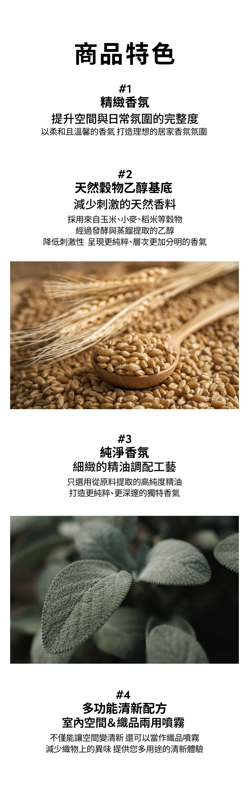 結合天然穀物乙醇與高純度精油,帶來煙燻木質香氣