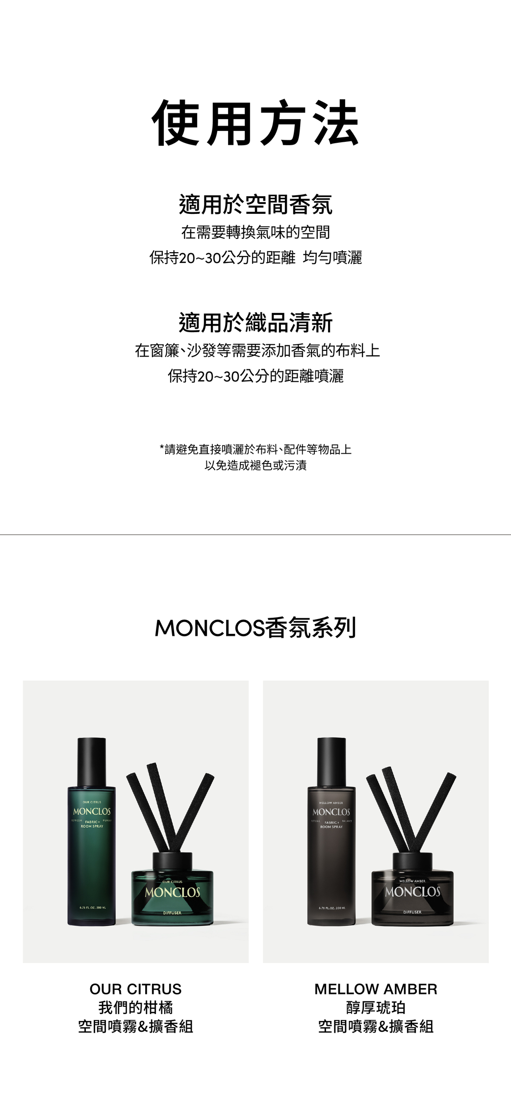 可用於空間清香與織品除味,讓居家氛圍時刻清爽舒心。
