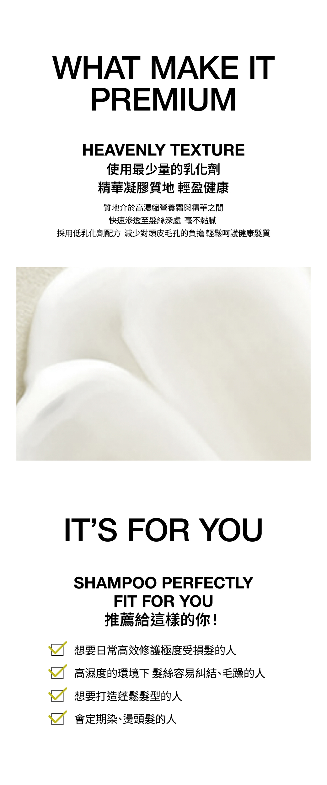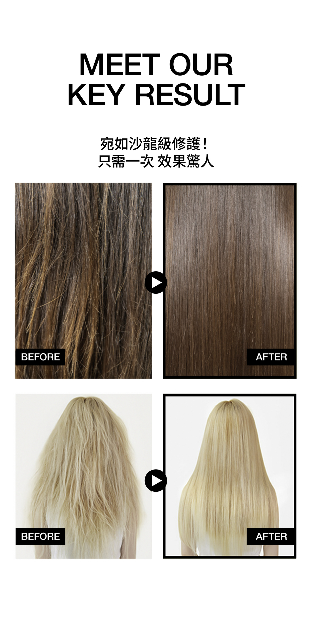 在修護受損髮質的同時,也有包覆保護功效,預防未來頭髮再次損傷。