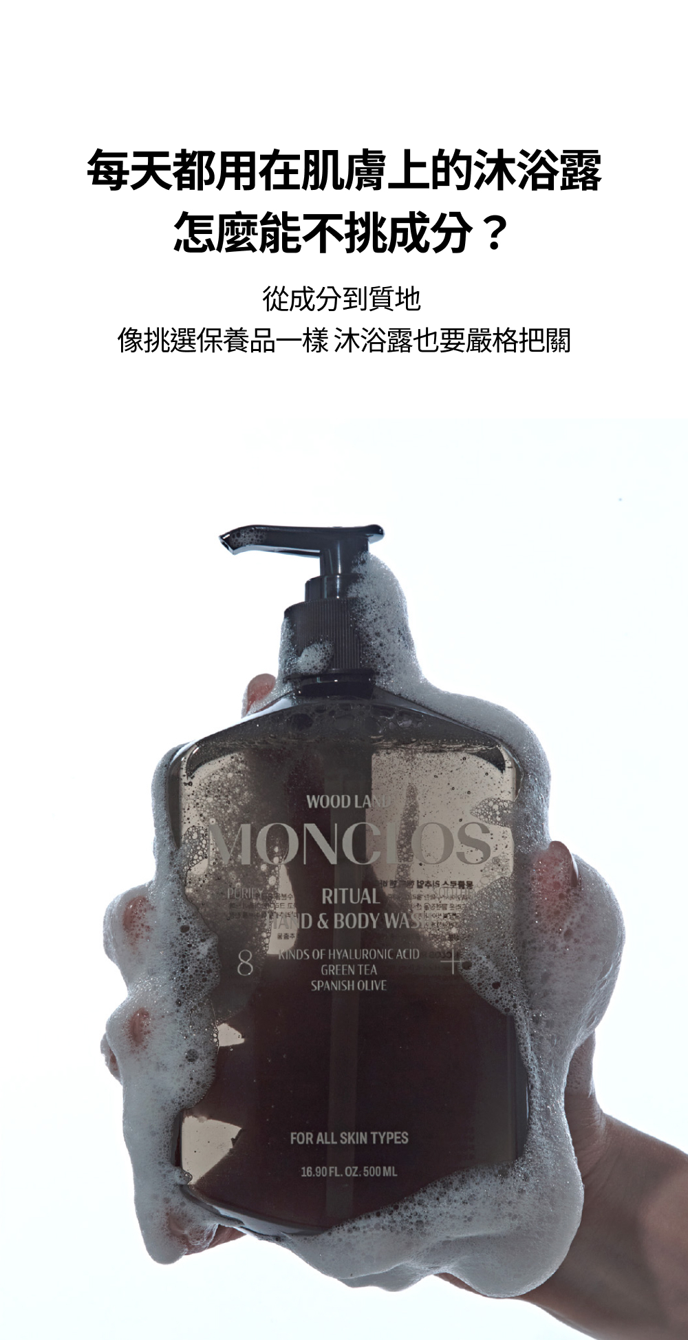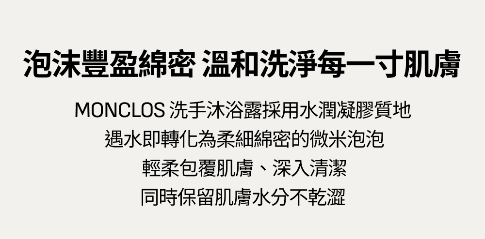 輕柔包覆肌膚、深入清潔,同時保留肌膚水份不乾澀。